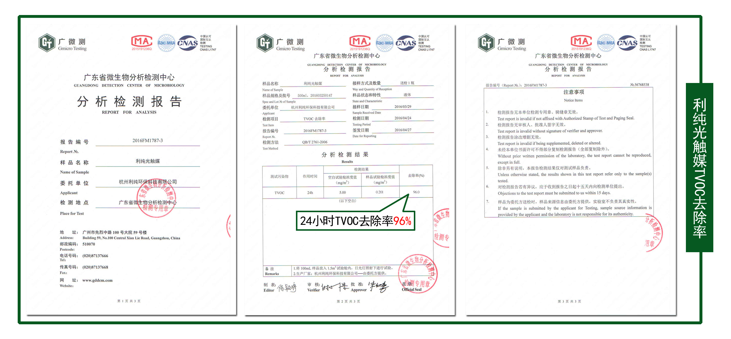光触媒除TVOC率报告